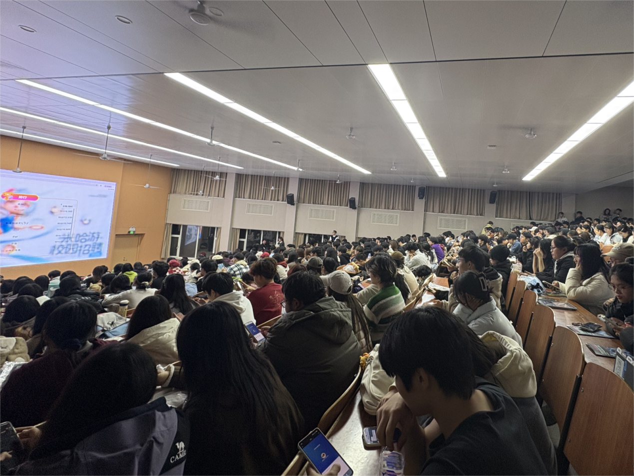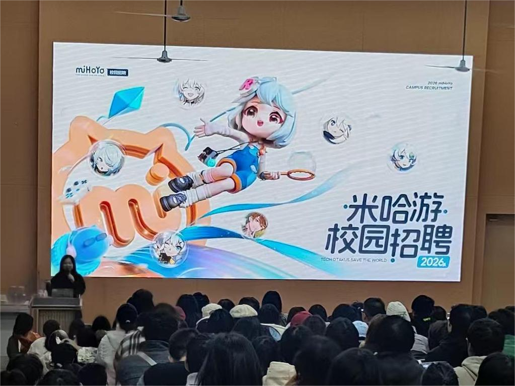 2025年10月17日18:00,米哈游科技(上海)有限公司(以下简称“米哈游”)在游戏学院A430教室举行校园招聘宣讲,现场座无虚席,气氛热烈,吸引了数百名怀揣游戏梦想与技术热情的应届毕业生到场参与。
