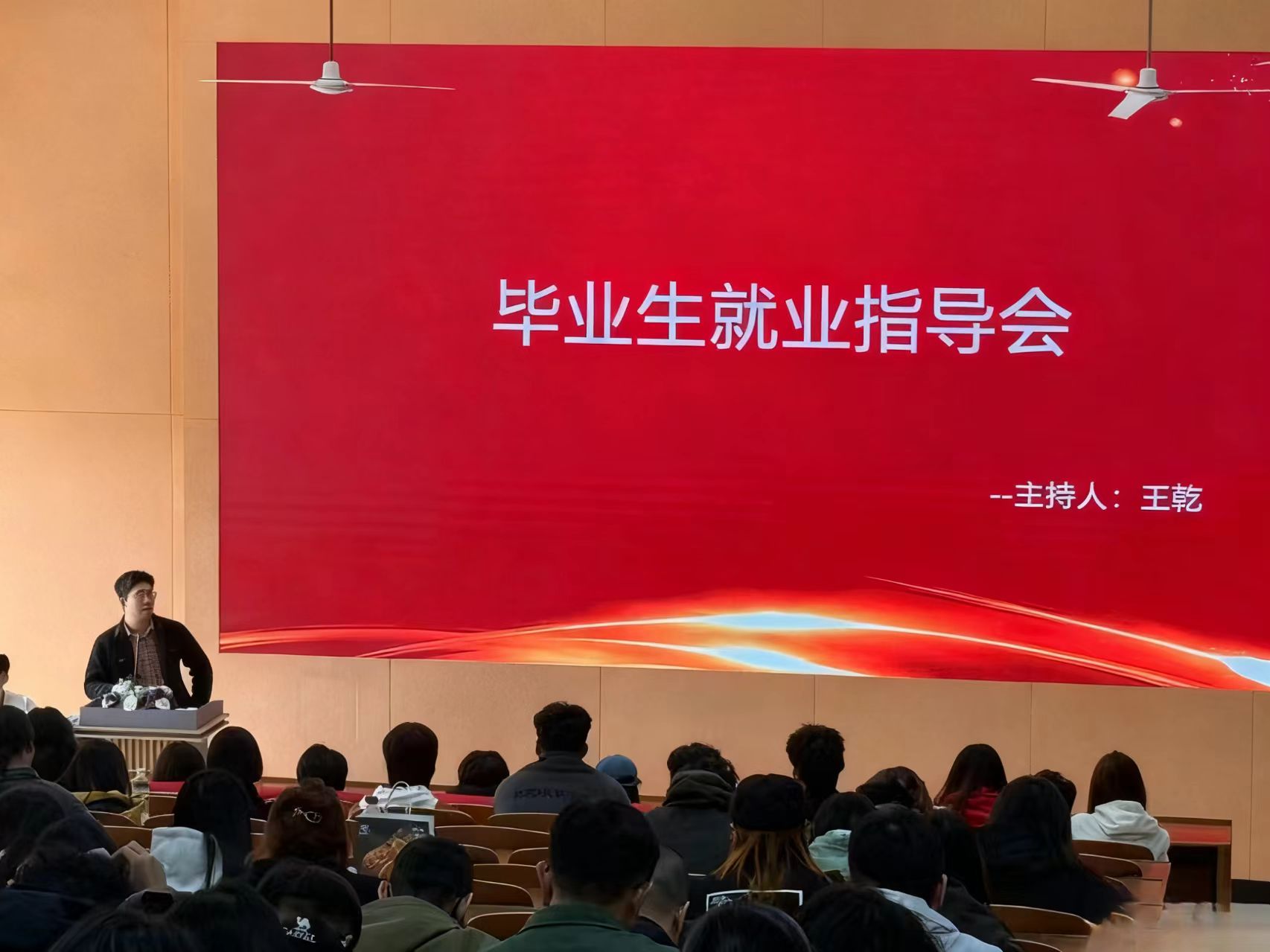 会议伊始,辅导员王乾老师结合当前高校毕业生就业新形势,解析就业市场整体走向。他鼓励同学们主动转变就业观念,把握校招、基层岗位等主流渠道,在实习实践中积累经验、明确职业定位。