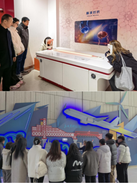 在吉林省科技馆,学生党员们依次参观了常设展览的多个主题展厅。从探索物质奥秘的物理奇观,到揭示生命密码的生物遗传;从展现宇宙浩瀚的天文地理,到呈现信息技术革命的人工智能与虚拟现实展区,丰富的展品与互动体验让大家目不暇接,流连忘返。尤其在“数字世界”、“智能生活”以及与游戏技术密切相关的VR/AR(虚拟现实/增强现实)体验区,同学们表现出了浓厚的兴趣。他们亲身体验了科技带来的感官冲击与交互乐趣,并就其技术原理、应用场景以及与游戏引擎、交互叙事、视觉效果等专业课程的结合点进行了热烈讨论和交流。