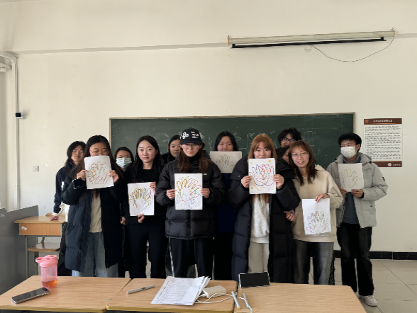 此次活动以轻量有趣的形式,既帮助成员释放了学习压力,更在互动中打破了人际隔阂。辅导员的参与,让集体的温暖底色更浓——当手掌与文字在纸上重叠,当笑声与鼓励在教室里回荡,同学们的“心灵联结”,正以最生动的方式生长。
