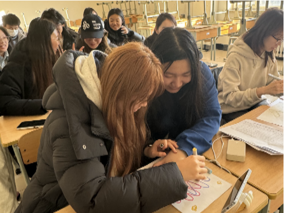 活动现场氛围轻松愉悦,活动以“掌心印记”创作拉开序幕:每位成员在A4纸上写下“请与我击掌”,并画出专属手掌轮廓,多彩的装饰让纸张瞬间成为“温暖邀请卡”。随后的“击掌联结”环节里,同学们暖心互动。