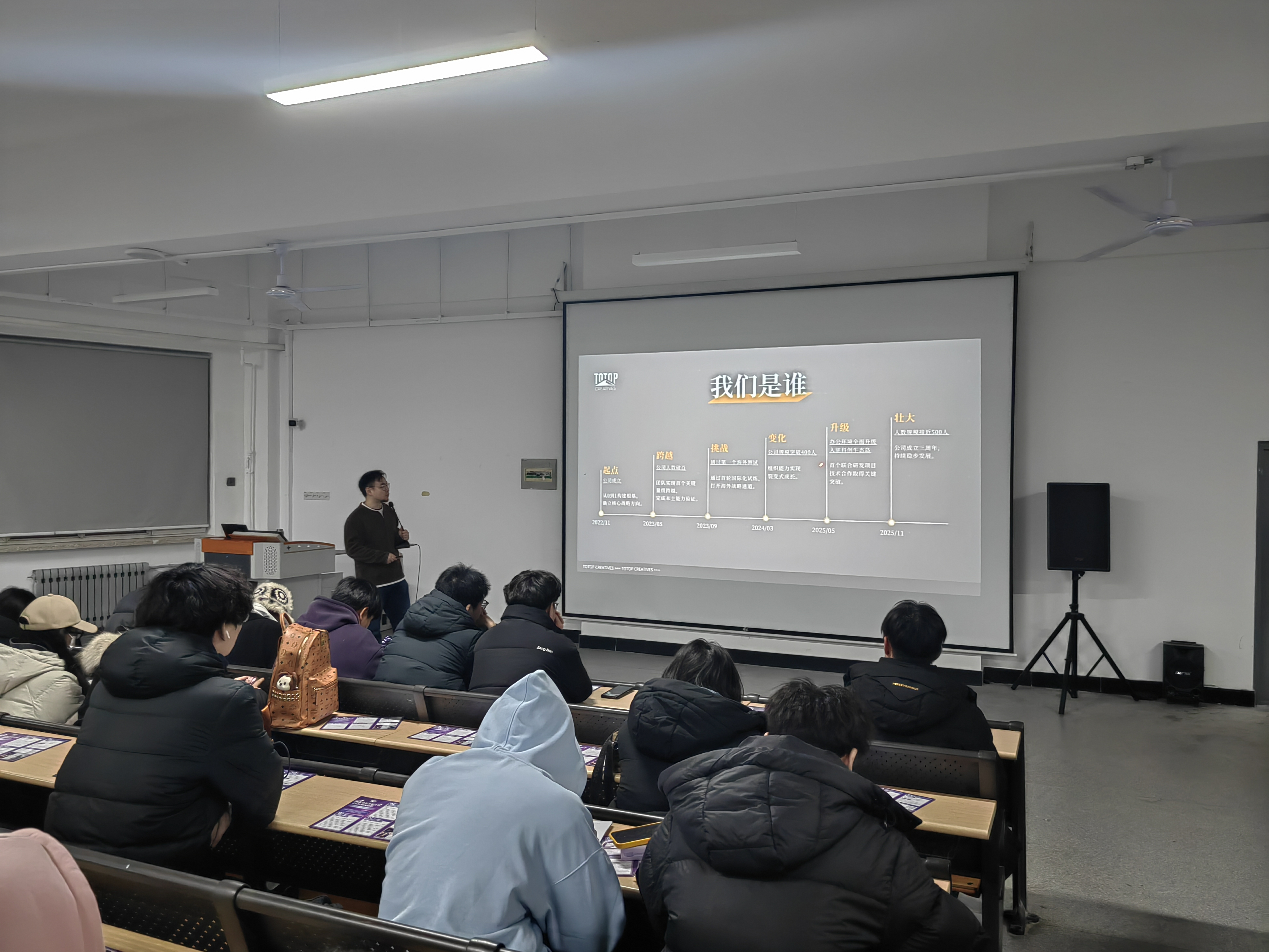 途拓科技人力资源负责人通过生动讲解和互动展示,向同学们呈现了公司独特的工作环境与企业文化。从灵活开放的工作氛围、持续学习的成长机制,到丰富的团队活动和福利体系,途拓科技“神仙职场”的魅力引得在场学生阵阵赞叹。许多同学表示,这种沉浸式的企业文化介绍让他们对未来职场生活充满期待。