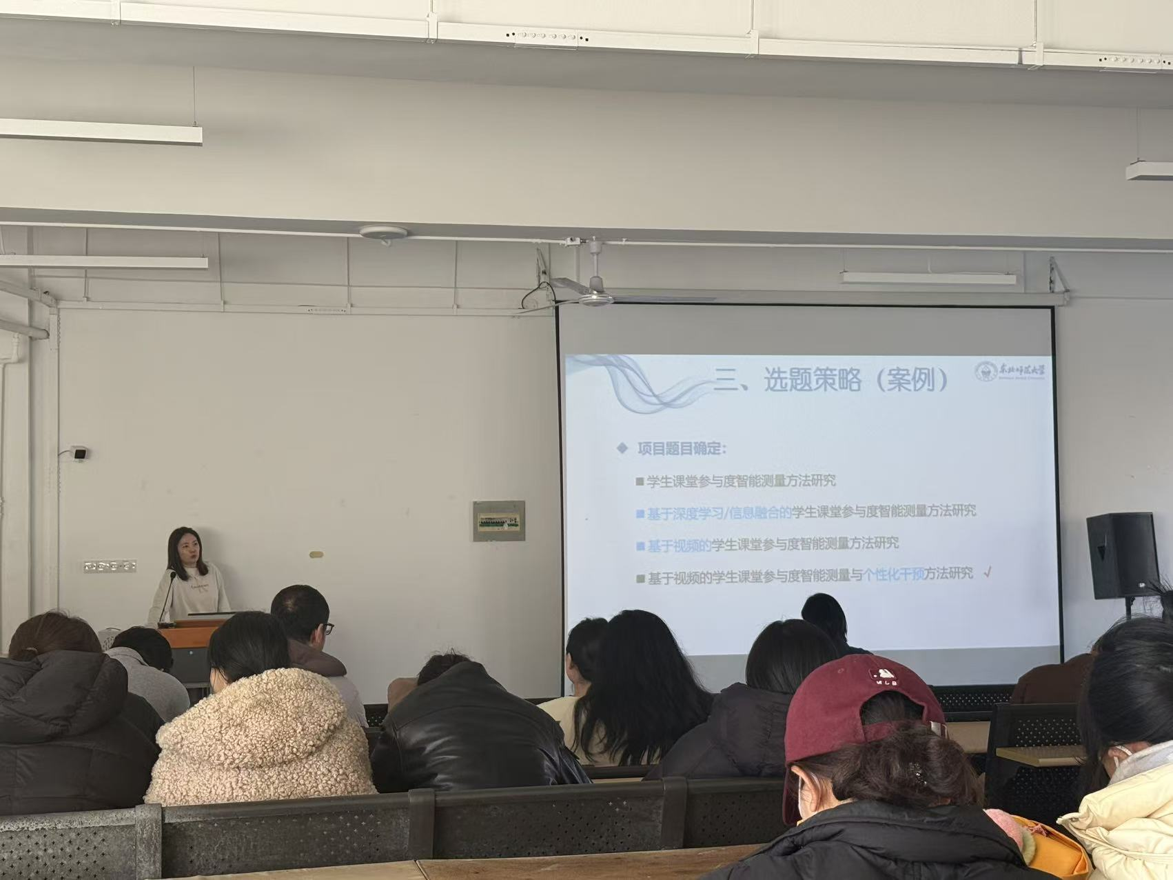郑彩侠老师以“从‘人工智能+教育’视角谈项目申报逻辑”为主题展开分享。她立足领域前沿发展趋势,先解读了国家及地方相关科研政策导向与发展机遇,强调项目申报需紧扣行业需求与学术前沿;随后从选题、方案设计、可行性分析、创新点提炼等核心环节,系统拆解申报材料撰写的逻辑框架,指出选题要兼具创新性与实用性,创新点需精准契合领域痛点;最后通过典型案例对比,总结申报常见问题及规避技巧,并针对性解答教师们的申报困惑,为项目申报提供了清晰思路。
