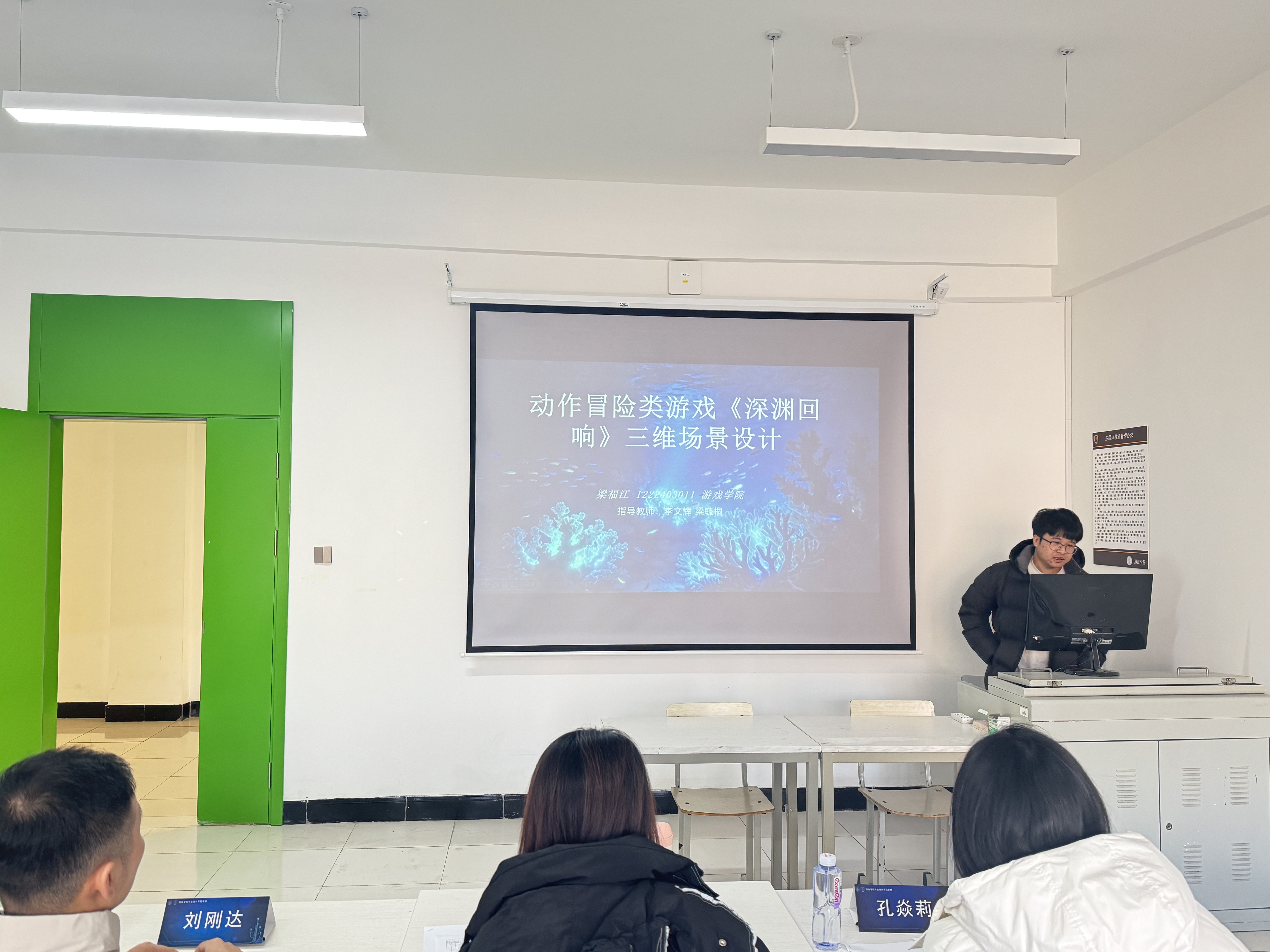 答辩现场,学生依次登台,以清晰的逻辑、饱满的热情展现各自的开题方案。三个专业的选题既贴合学科发展前沿,又紧扣游戏产业实际需求:数字媒体艺术专业学生聚焦国风游戏视觉设计、互动叙事创新、元宇宙场景构建等方向,将艺术创意与文化内涵深度融合;新媒体技术专业选题围绕智能交互游戏开发、