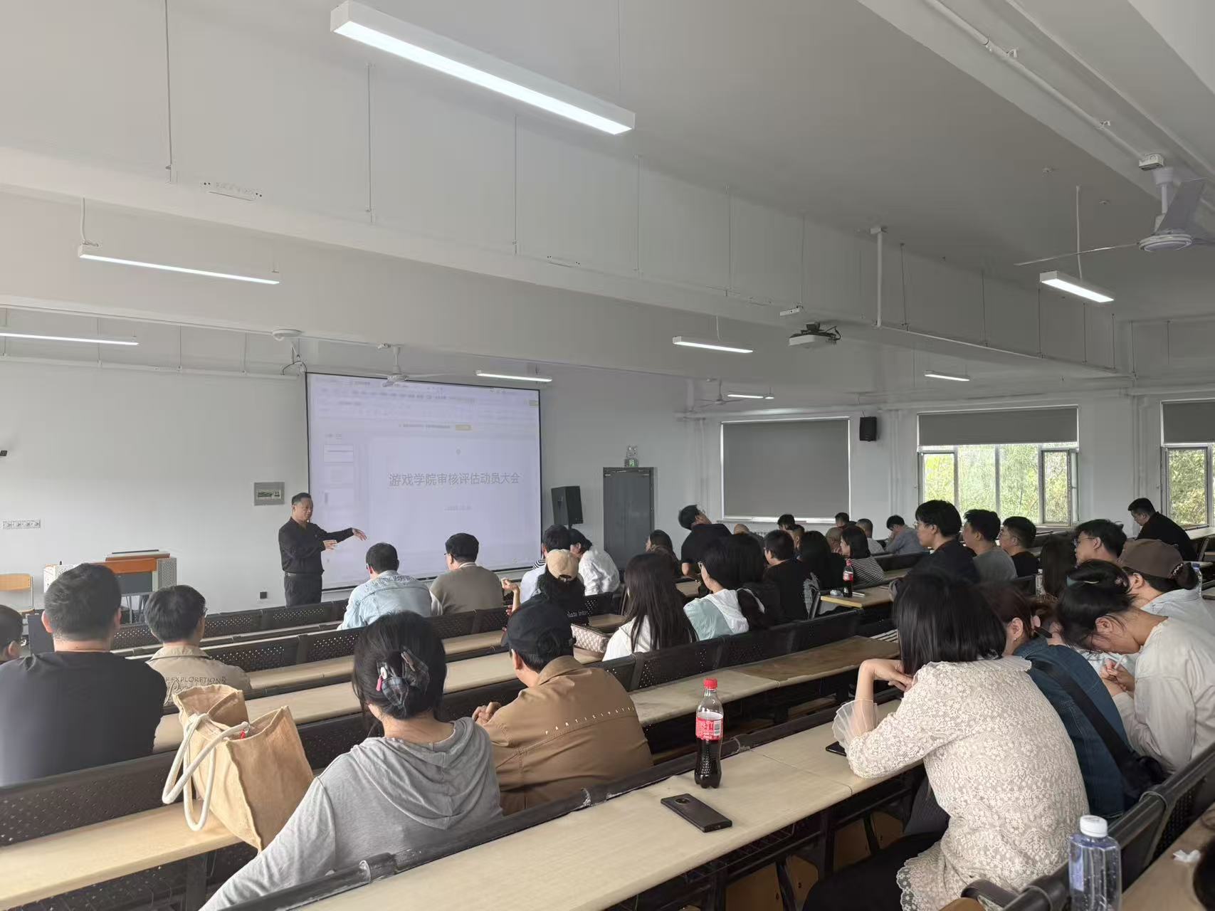 2025 年 9 月 30 日中午 12:15,游戏学院在 A530 教室召开审核评估动员大会,旨在全面部署审核评估相关工作,明确任务要求。学院领导班子、全体教职工参会,会议由游戏学院院长安宁主持。